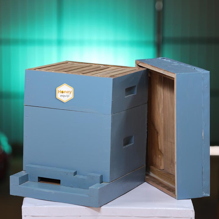 Australian Bee Hive with two full depth supers. The Hives are fully assembled using screws and are made of pine wood. The Bee Hives are also available in Jungle wood, teak wood or any other wood of customer’s choice. The Hives are paraffin wax dipped for extended life. Hives with medium and shallow supers are also available.