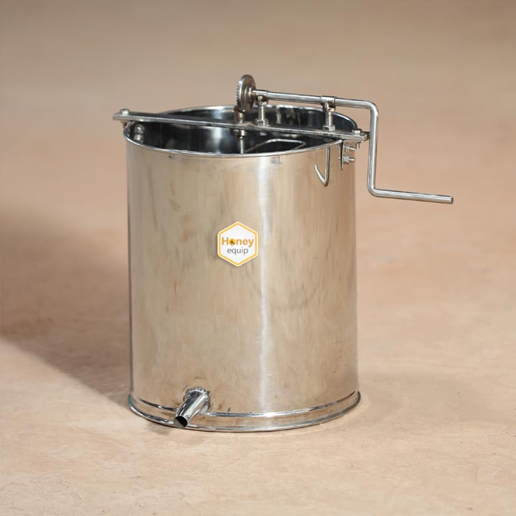 Four frame honey extractor suitable for ISI ‘A’ type super frames. These extractors are sturdy and simple mechanical devices for extracting honey from honey combs. Honey extractors made of Stainless steel and Galvanized iron Sheet are available. The extractors can be made for 2 frames, 4 frames, 6 frames and 8 frames model. Honey extractors for Langstroth/Australian frames are also available in combination of number of frames and honey holding capacity.